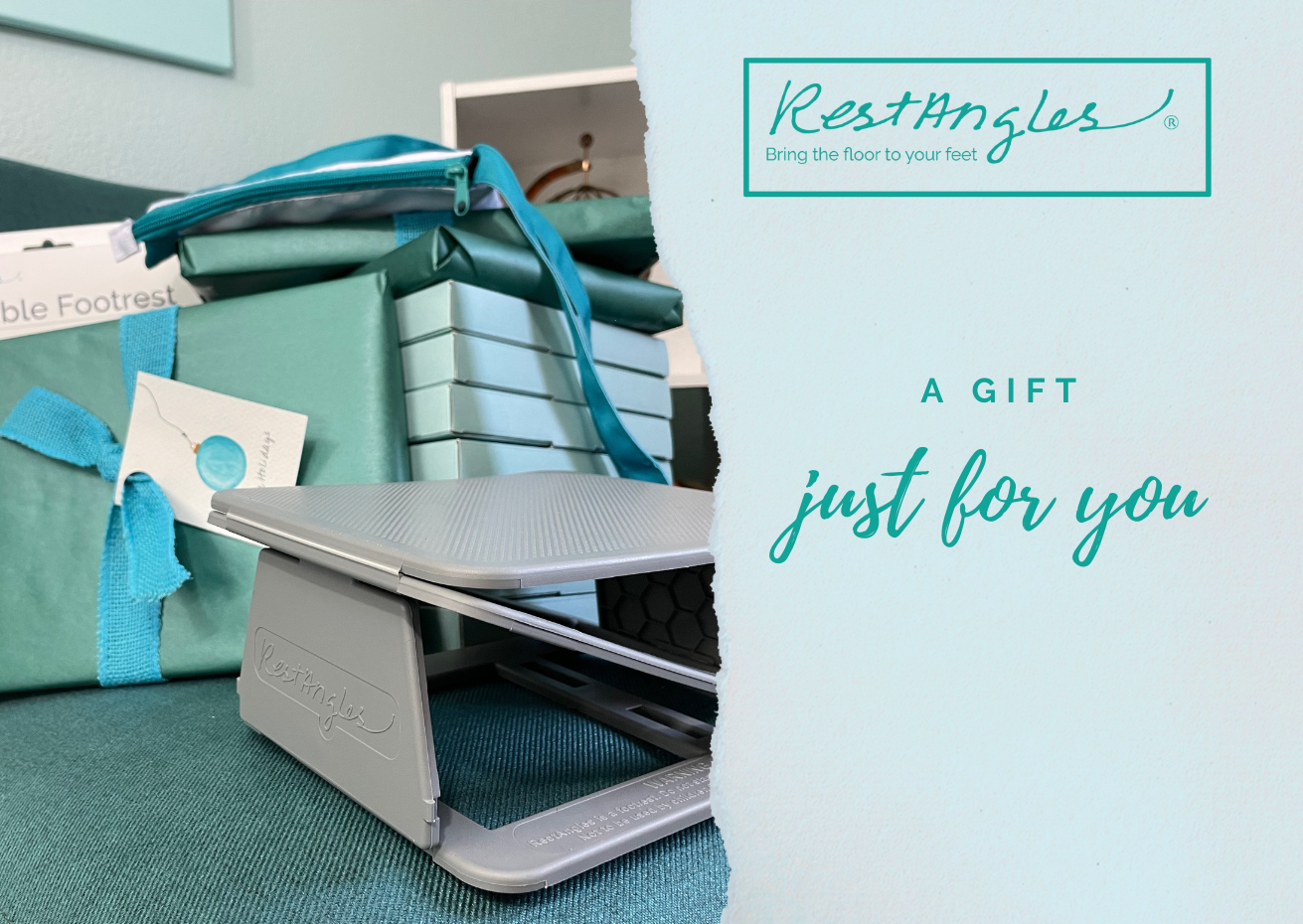 Shopping for your favorite bearer of dangling legs and not sure what to give them? We suggest the gift of comfort with a RestAngles portable footrest digital gift card.